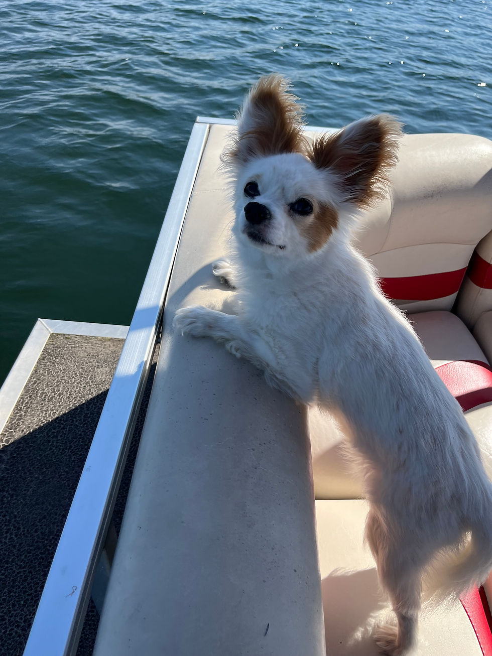 Likes: Puperonis (like is not the correct term, loves them!), bedtime, fetch with Lamb Chop, Cats (although her two favorite cats have sadly passed on), car rides, cabin time, and her grandma